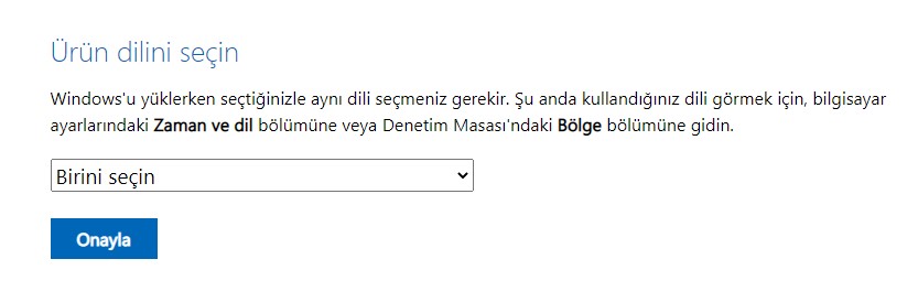 Sürümü seçtikten sonra altına bu yazı geliyor. Burada da dilimizi seçip onaylıyoruz.